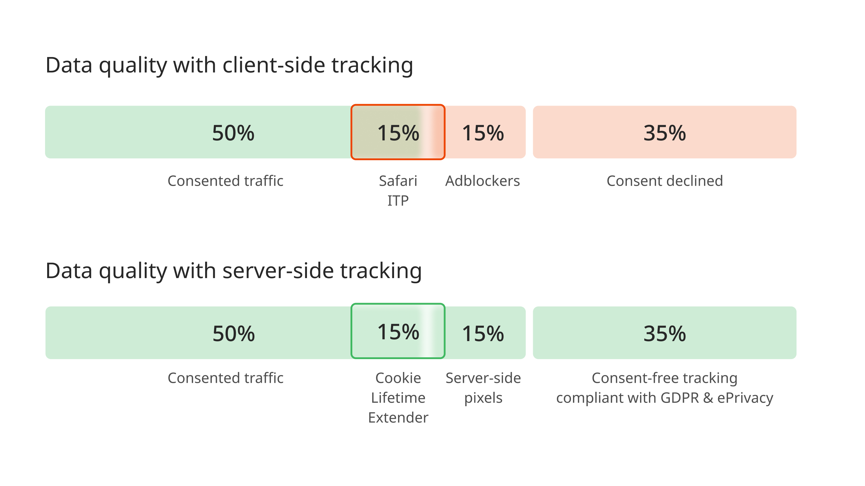 A significant share of your users, depending on market and CMP implementation, often between 20 and 40%, either give no consent or give it only partially. Client-side tracking drops out completely or partially for this user group. And this disproportionately affects exactly those users who have dropped off across multiple visits. The most cautious users are also the hardest to measure.